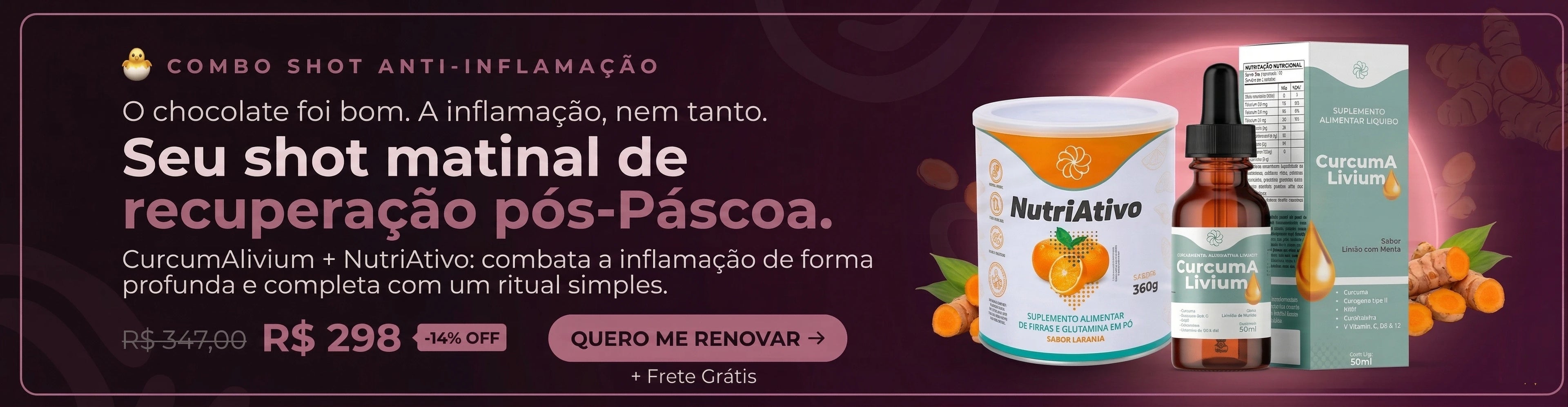 Boa noite, estou gostando muito do curcumalivim,se me ajudar com certeza vou comprar mais, quero comprar o nutri ativo, tenho intestino muito preso
